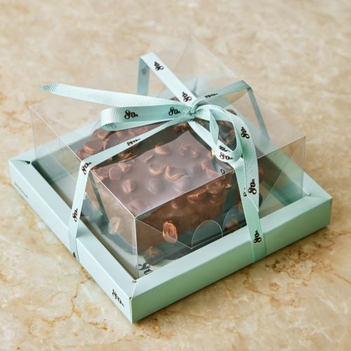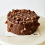 hazelnut base with dates and coconut, banana and dark chocolate mousse, gourmet dark chocolate with hazelnuts