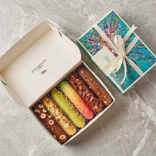 смаки еклерів: Фундук, Груша, Фісташка-Малина, Манго, Карамель , Ваніль